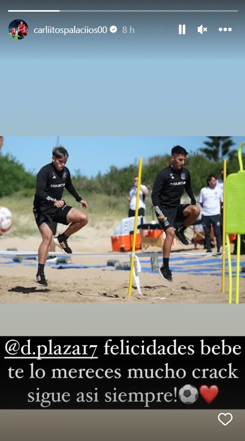 Otro que se sumó a las felicitaciones para Diego Plaza en el primer equipo de Colo Colo fue Carlos Palacios. El talentoso futbolista, que por estos días interesa mucho en Boca Juniors, también usó su cuenta de Instagram para darle un pequeño agasajo al volante.