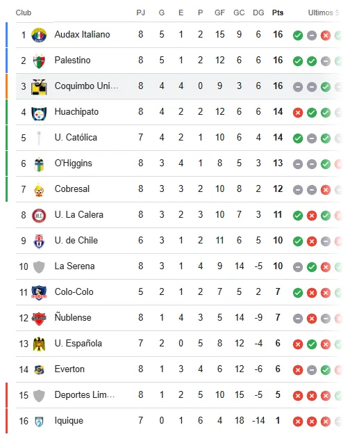 Previo a la fecha 9 de la Liga de Primera 2025, así está la tabla de posiciones tanto para Colo Colo y Coquimbo Unido.