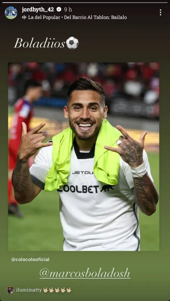 Y dándole todo el respaldo a un jugador que ocupa ahora su lugar en ataque, el zurdo posteó una efusiva historia con la imagen de Marcos Bolados celebrando el gol ante U. La Calera y la frase “Boladiios”.