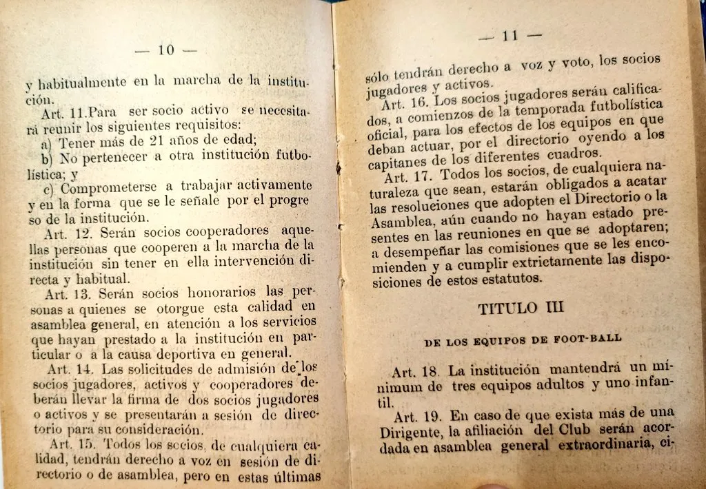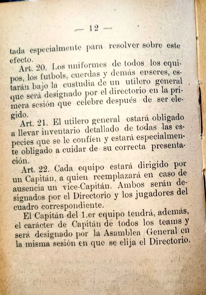 Además, llama la atención un articulo en el que designa a los capitanes de cada plantel mediante el directorio del club junto al equipo correspondiente. Por otro lado, los jugadores en calidad de socios activos debían participar obligatoriamente tanto de los partidos, entrenamientos y otras actividades.
