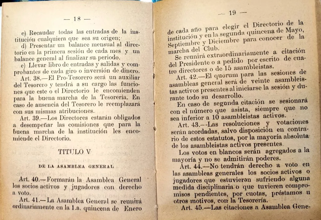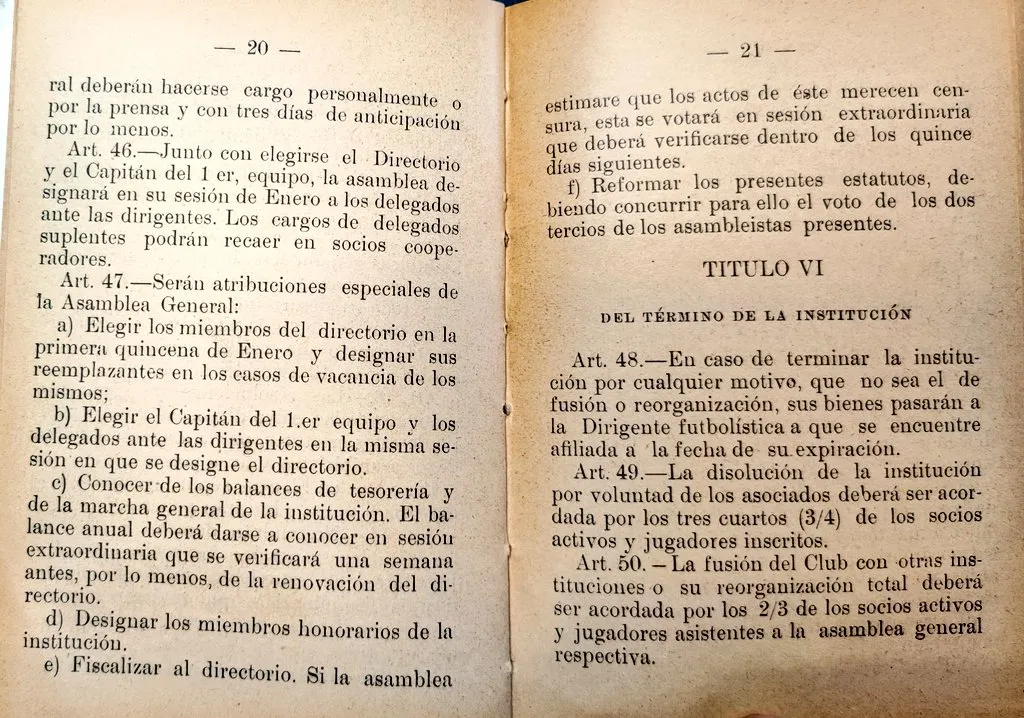 El código colocolino de los estatutos de 1929