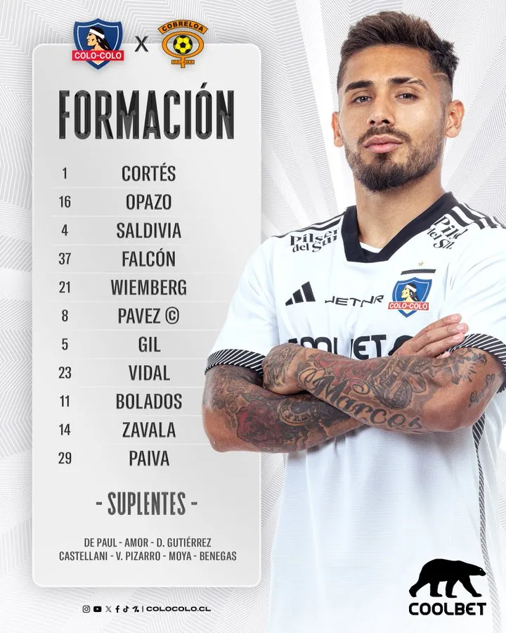 Es que para el duelo con Cobreloa, Colo Colo registra tres bajas obligadas por lesiones de diversa consideración: Lucas Cepeda, Damián Pizarro y Carlos Palacios. De ellos, el único titular es La Joya, cuyo lugar en la formación lo tomará Marcos Bolados.