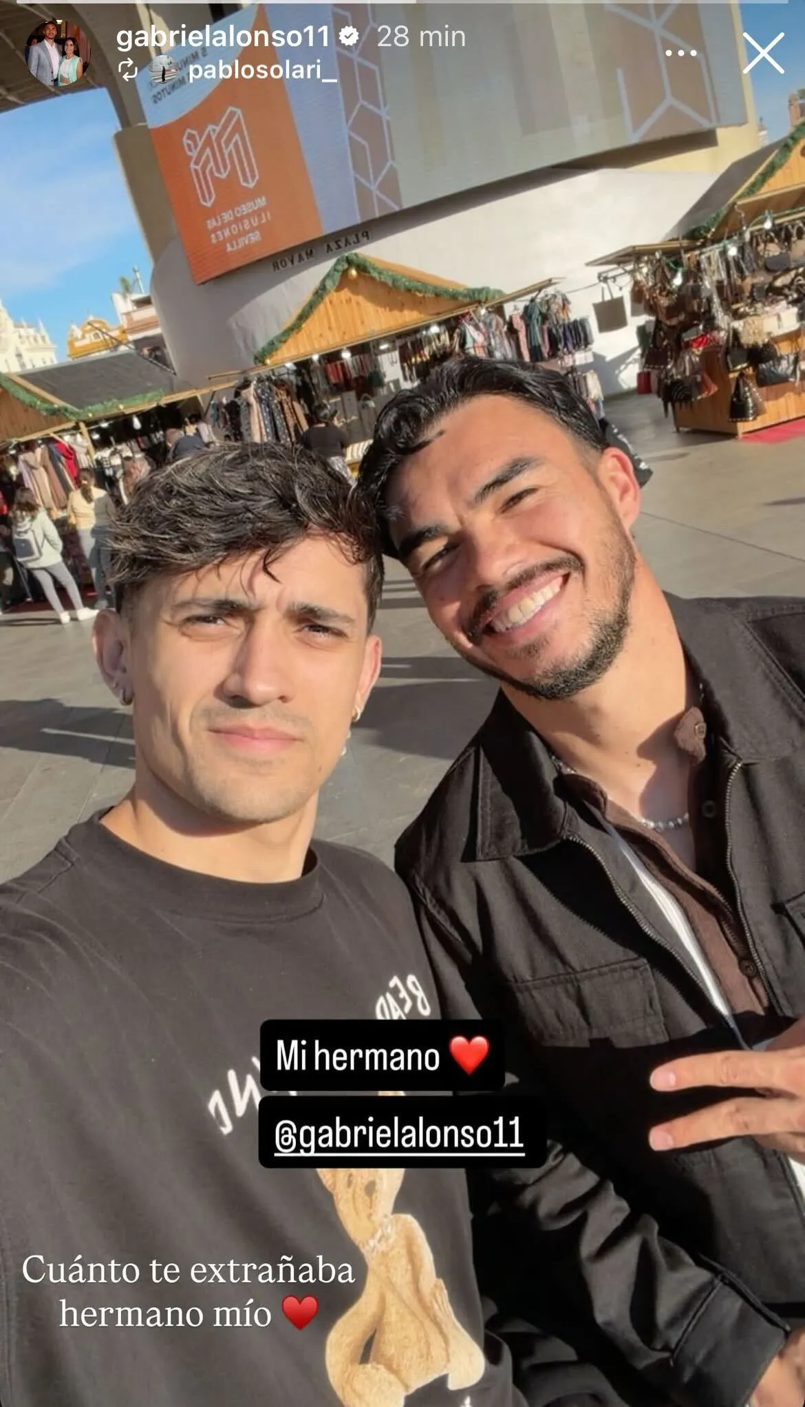 La foto fue subida a las historias de Instagram de Solari para, luego, ser también puesta en la cuenta de Suazo. “Mi hermano”, puso el jugador del Sevilla en sus redes, acompañando todo con un corazón.