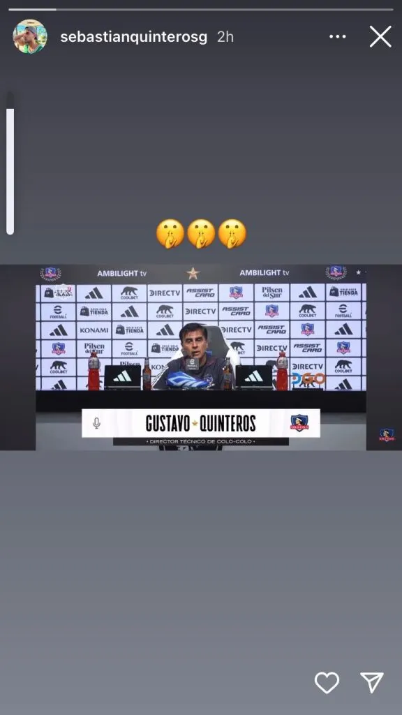 Esta noticia causó la irritación del hijo del técnico argentino, Sebastián Quinteros, que a través de su cuenta de Instagram reaccionó a la información que entregó el sitio partidario, al lanzar una fuerte crítica a quienes dudan de que su padre siga en Colo Colo.