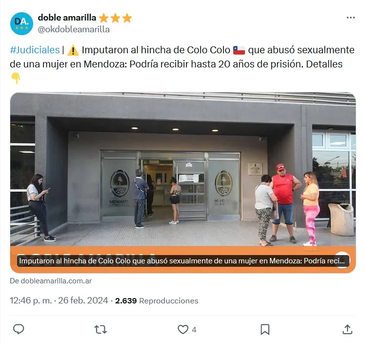 Dentro de los múltiples hechos violentos que cometieron los hinchas de Colo Colo en su visita a Mendoza, para el duelo por Copa Libertadores ante Godoy Cruz, el más fuerte fue el abuso sexual que realizó uno de ellos en la previa al encuentro internacional.