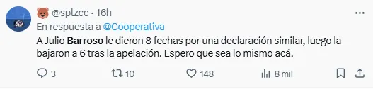 Todos estos dichos encendieron la mecha entre los hinchas albos, quienes en redes sociales comenzaron a exigir un duro castigo para el azul. ¿La razón? Pues porque se parece mucho a lo que sucedió con Julio Barroso en el pasado.