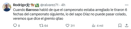 “Me parece que el fútbol se reduce a muy poco cuando la gente cree que manipulando consigue cosas. Esto me tiene un poco confundido”, agregó Barroso.