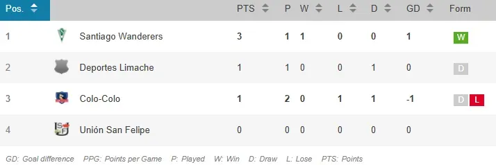 ¿Cómo está la tabla de posiciones de Copa Chile para Colo Colo?