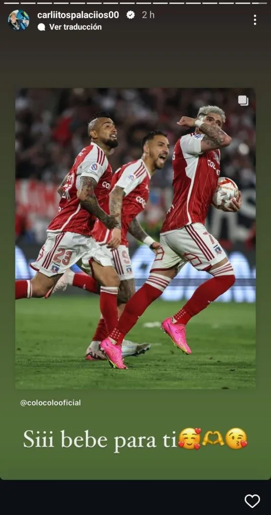 Ayer en la noche luego de su gol ante Audax Italiano, el jugador subió una historia a Instagram con el festejo de su anotación, donde dejó la frase “sí bebé para ti”, acompañado de varios emojis amorosos. Lo más curioso, es que después eliminó la publicación.