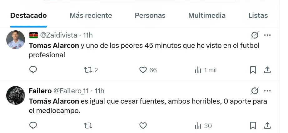 “Uno de los peores 45 minutos que he visto en el fútbol profesional” y una comparación con César Fuentes: “Ambos horribles, cero aporte para el mediocampo”.