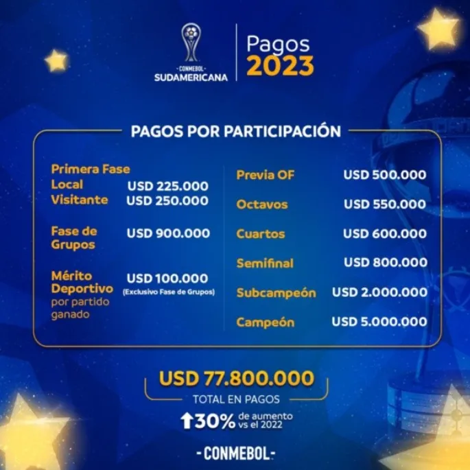 Los premios de la Copa Libertadores y la Copa Sudamericana en 2023