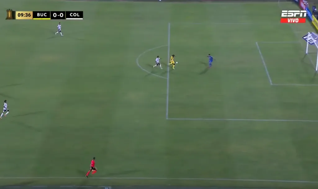 El reloj cambiaba a los 9 minutos, cuando un tiro largo pilló mal parada a la última línea de Colo Colo, lo que permitió que Kenin Londoño corriera con todo a la portería de Brayan Cortés.