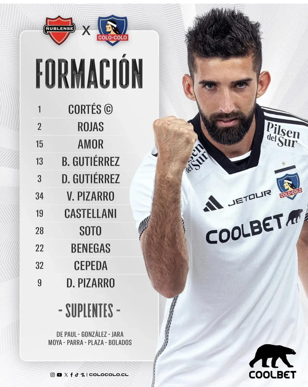 Brayan Cortés en la portería; Bruno Gutiérrez, Emiliano Amor y Daniel Gutiérrez en la defensa; Jeyson Rojas, Vicente Pizarro, Gonzalo Castellani, Lucas Soto y Lucas Cepeda en el mediocampo; Damián Pizarro y Leandro Benegas en el ataque fueron lo que envió el DT a la cancha. Y esto, al igual que con O’Higgins, le costó caro.