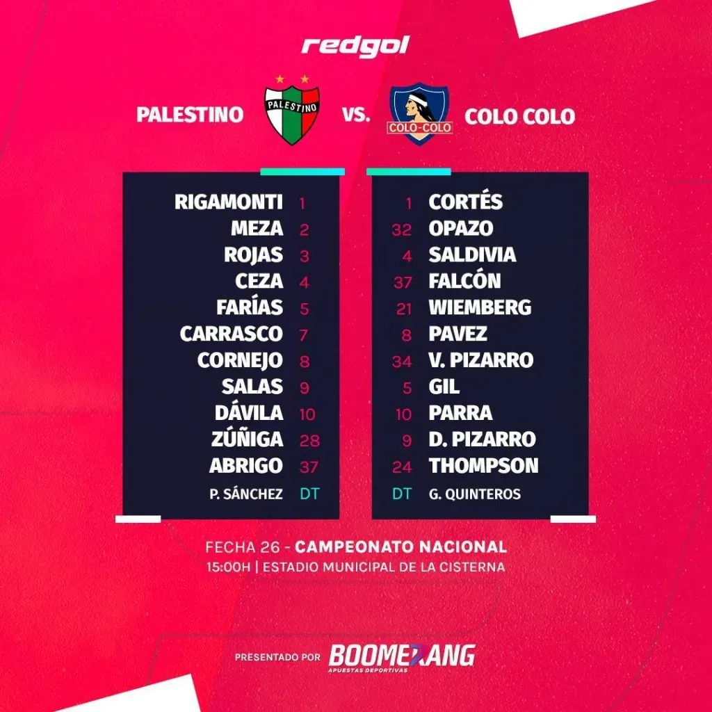Este domingo continúa toda la emoción del Campeonato Nacional y, en el marco de la fecha 26, Colo Colo visita a Palestino para animar un duelo imperdible en la parte alta de la tabla de posiciones.