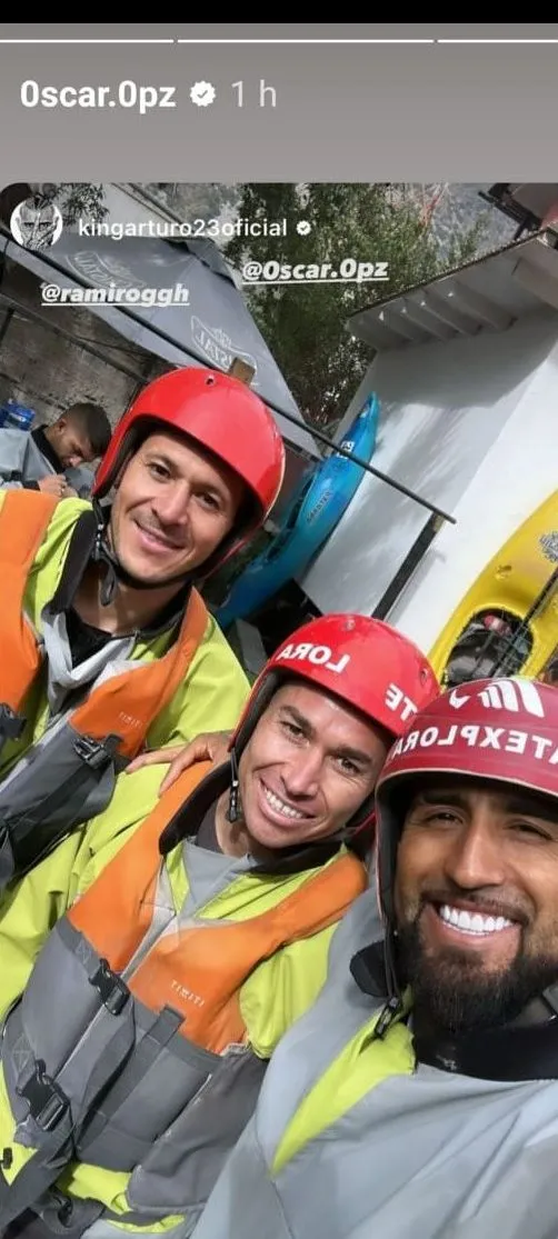 El King mostró en su Instagram varias historias compartiendo con sus compañeros del plantel. Entre ellas se ve a Leo Gil, Ramiro González y Óscar Opazo con el equipamiento para realizar el descenso por el río Maipo.