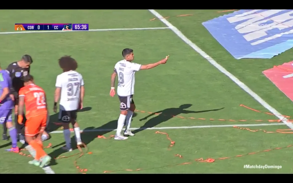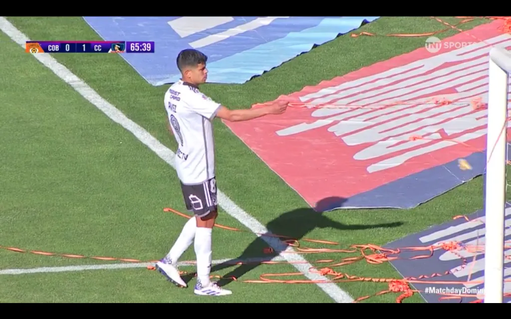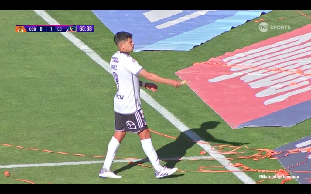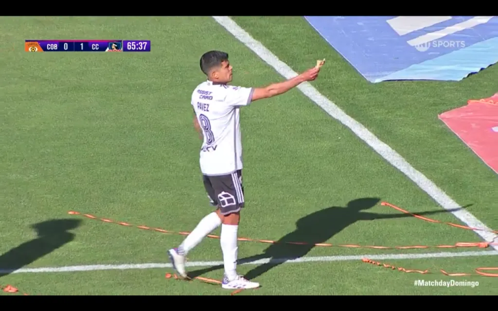 Ahí fue cuando el capitán de Colo Colo, Esteban Pavez, se agachó y recogió la empanada, o el cacho de empanada que quedó después del vuelo desde la galería. El volante albo lanzó la tradicional comida chilena por la línea de fondo fuera del campo del juego.