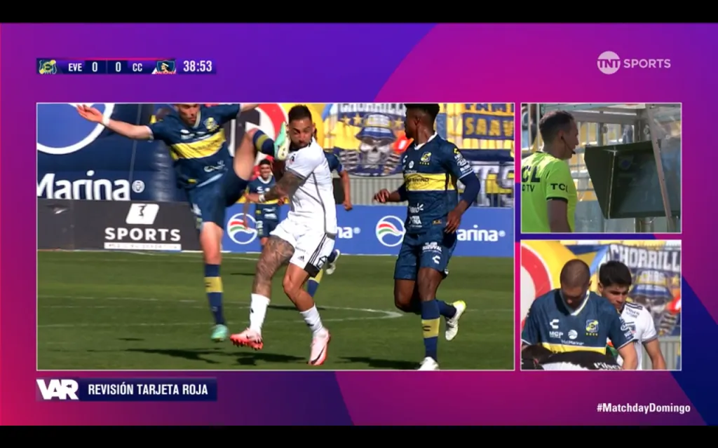 No obstante, tras ser llamado por el VAR, el árbitro Millas terminó por cambiar su opinión y anular la tarjeta chillona. En vez de ella, sacó de su bolsillo la temida cartulina colorada, que terminó dejando a Everton con uno menos.