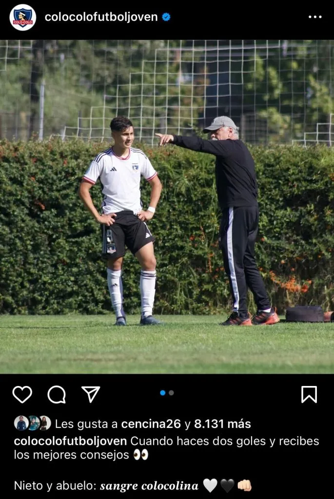 “Cuando hace dos goles y recibes los mejores consejos. Nieto y abuelo: sangre colocolina”, escribieron en las plataformas digitales albas, celebrando la tremenda postal futbolística.