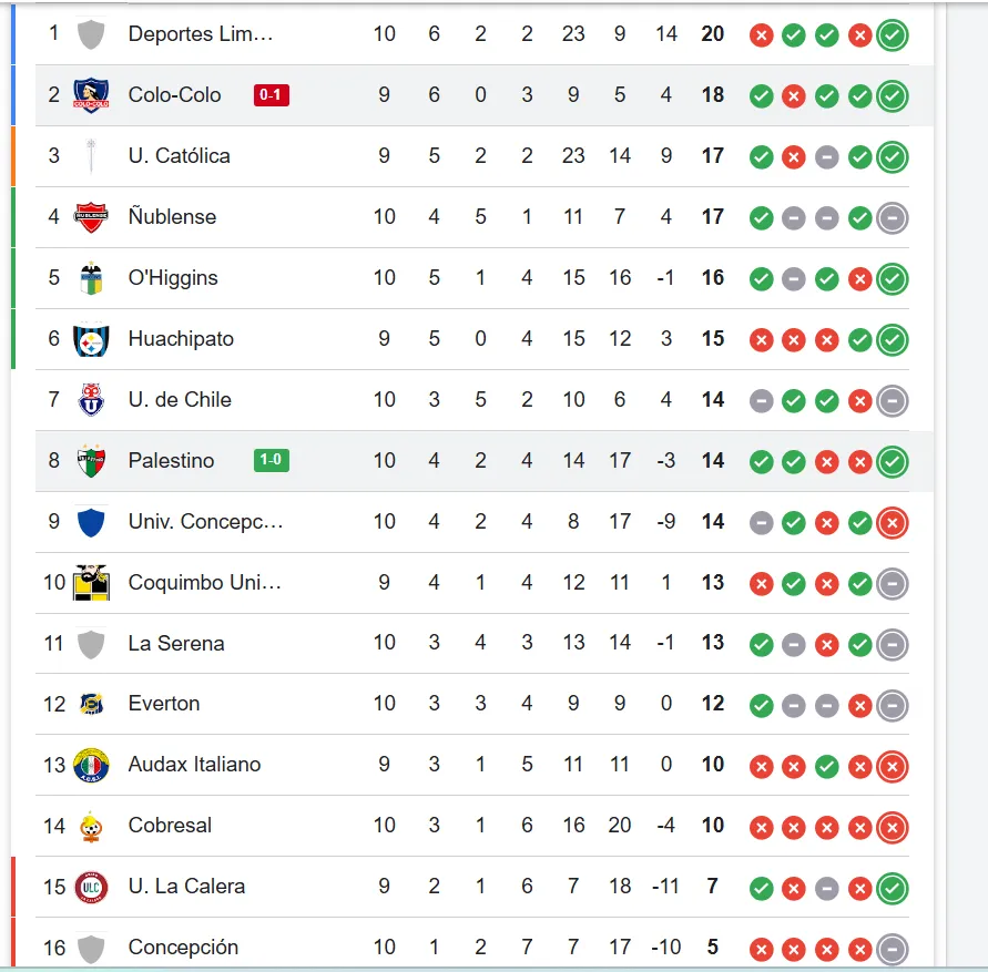 El que aprovechó este resultado es Deportes Limache, quienes ahora son los únicos punteros del la Liga de Primera con 20 puntos, mientras que los albos quedaron dos unidades más abajo, con un partido menos.