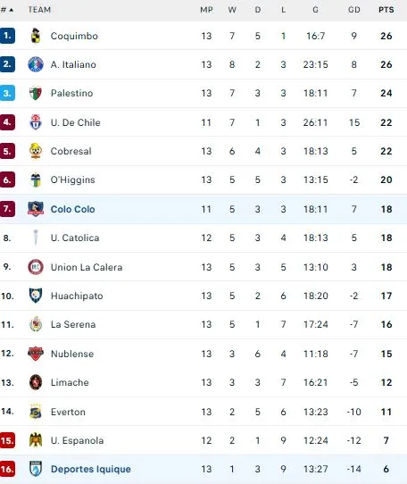 Tras el 2-2 entre Deportes Iquique y Colo Colo, los celestes quedaron en zona de descenso directo aún en la Liga de Primera, mientras Colo Colo se mete en medianía de tabla, aunque podría escalar si gana los duelos pendientes.