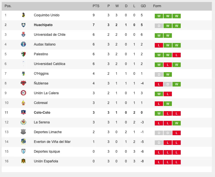 En la punta de la tabla de posiciones está Coquimbo Unido con puntaje perfecto, sumando nueve puntos en tres partidos. Universidad de Chile es el único equipo que podría alcanzar al Pirata. Esta tarde (18:00 horas), los azules enfrentan a Cobresal en El Cobre.