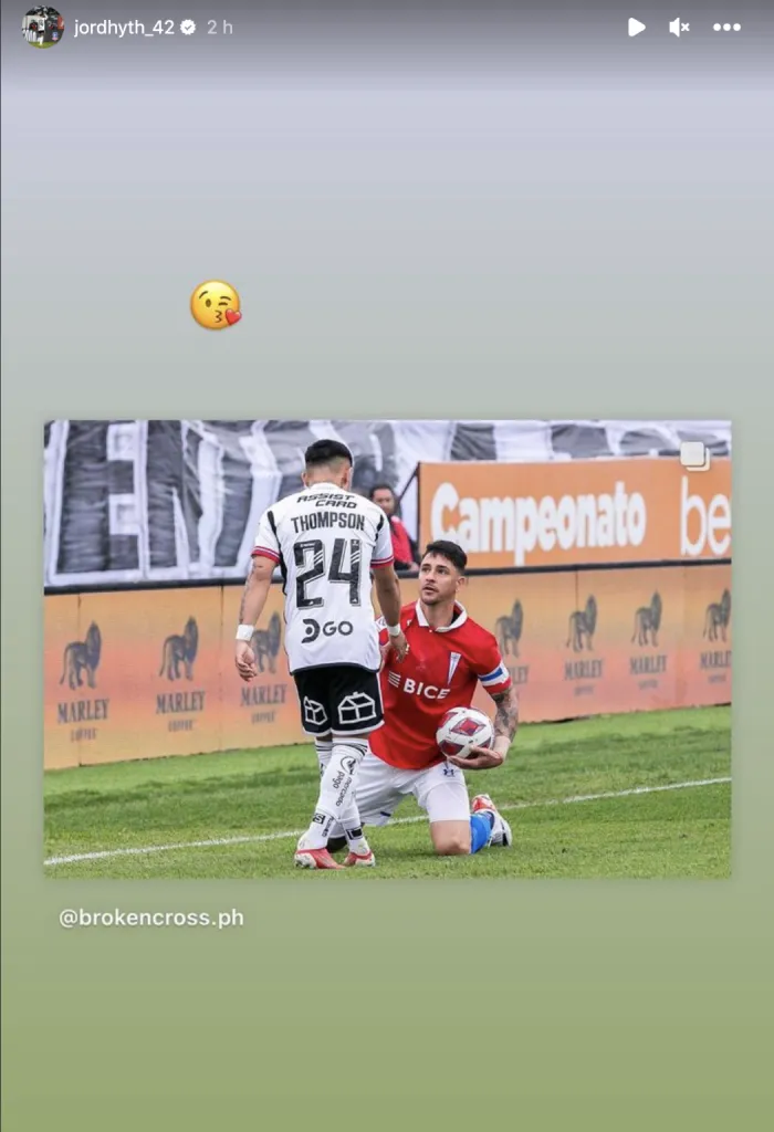 Pero Thompson continuó acordándose de Zampedri una vez finalizado el partido. Prueba de ello es la foto que subió en sus historias, con un Toro arrodillado y con él levantándolo. El joven jugador acompañó la imagen con un emoji de beso, dedicándoselo al goleador de la UC.