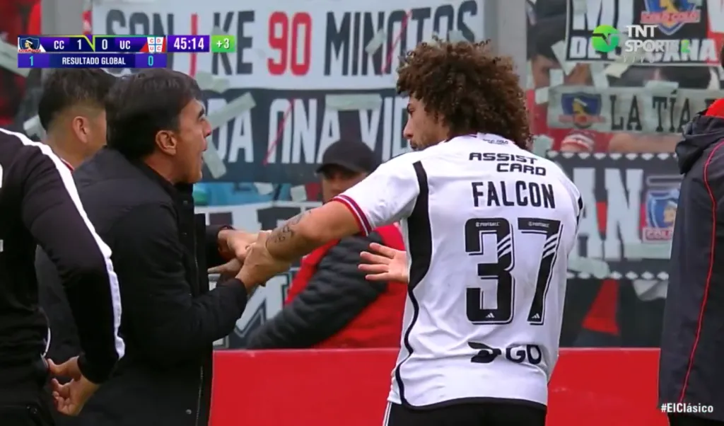 El partido de Colo Colo y Universidad Católica por Copa Chile ha sido muy caliente en el primer tiempo, donde una de las jugadas más relevantes fue cuando Gustavo Quinteros tuvo que afirmar del cuello a Maximiliano Falcón para evitar que siga en una pelea.