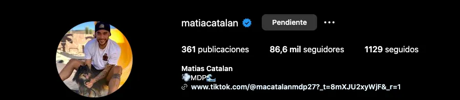 Curioso, eso ya no es así. Es decir, en su cuenta de Instagram ya no se puede leer “jugador de Talleres”. Su bio simplemente quedó sin descripción y, aparte de su lugar de nacimiento (Mar del Plata), no hay referencia a su equipo cordobés.
