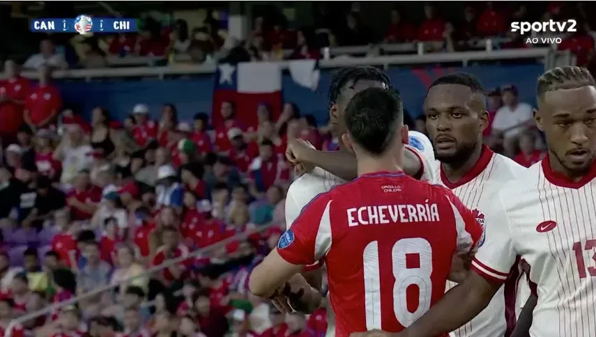 En esta ocasión fue muy evidente. En los primeros minutos de juego, Echeverría recibió un codazo directo, sin pelota en juego, de Bombito. Pero, el VAR no dijo ni pío.
