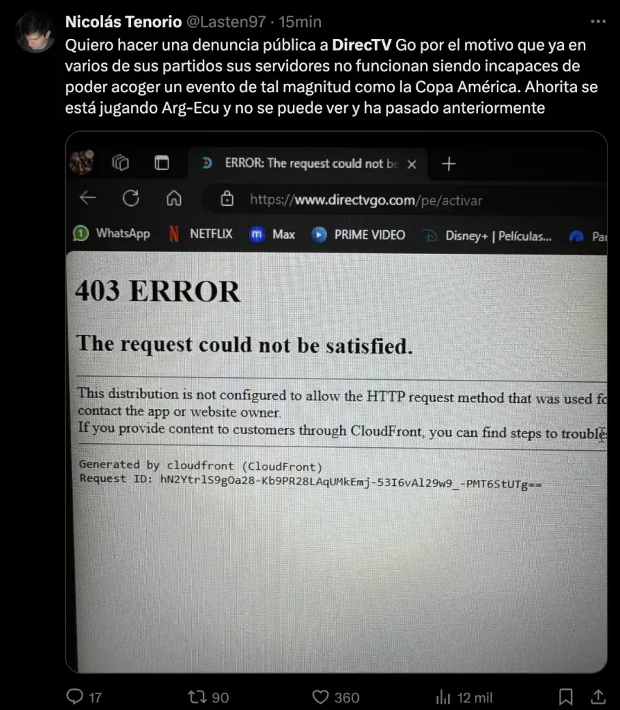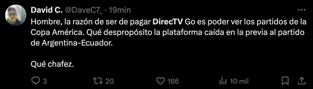 Problema mayúsculo, ya que es la única manera de ver online el partido de Argentina de manera legal y muchos usuarios se encontraron con el inconveniente. Desde DirecTV, por ahora solo han escrito este mensaje a quienes reportan el problema: