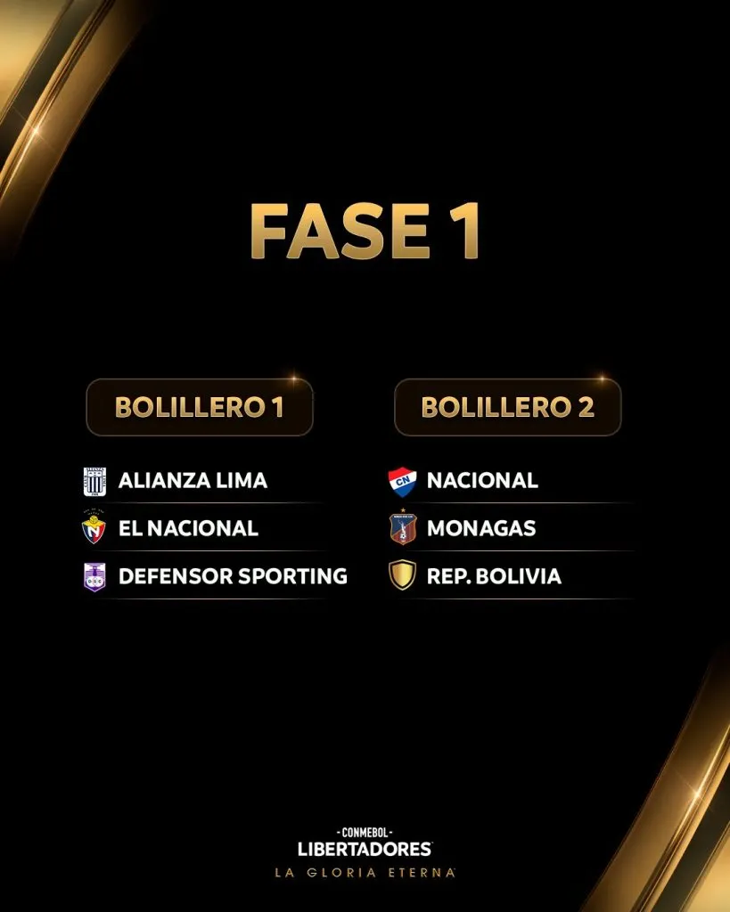 A través de las redes sociales de la CONMEBOL Libertadores, se informaron los bolilleros para la Fase 1 y 2 del máximo certamen continental son: