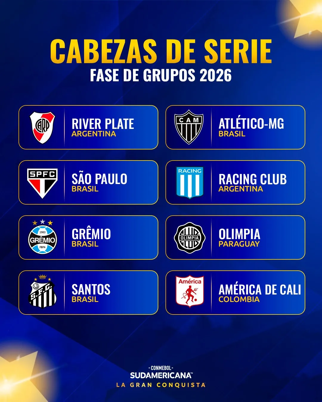Los primeros que conocieron cuál es su destino fueron Audax Italiano, Palestino y O’Higgins que serán parte de la “Gran Conquista”. Todos los nacionales enfrentarán a campeones de América en sus respectivas zonas.