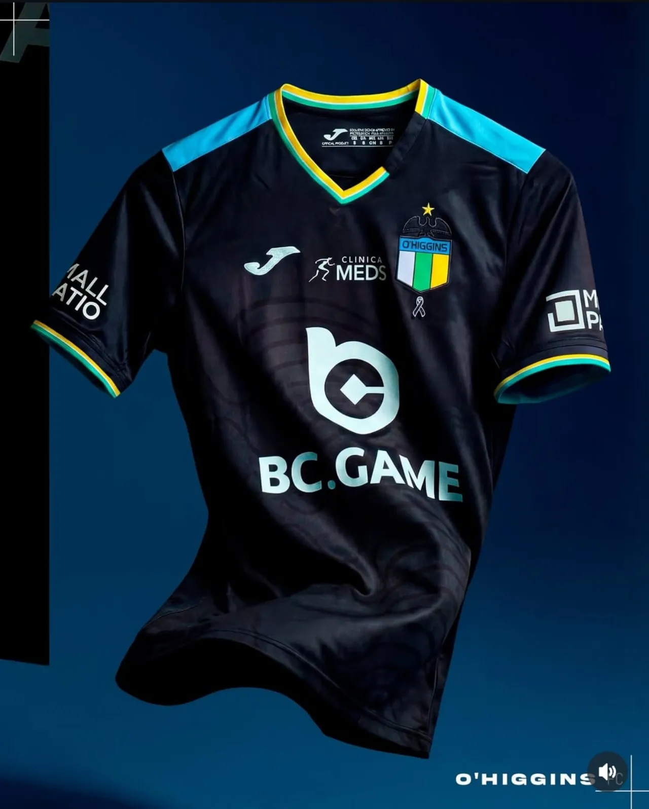 La novedosa remera del Capo hace alusión al origen del club. Con un negro predominante, las mangas y el cuello se tiñen de verde, blanco y amarillo, los colores del O’Higgins Braden y América, equipos que se fusionaron para formar el club.