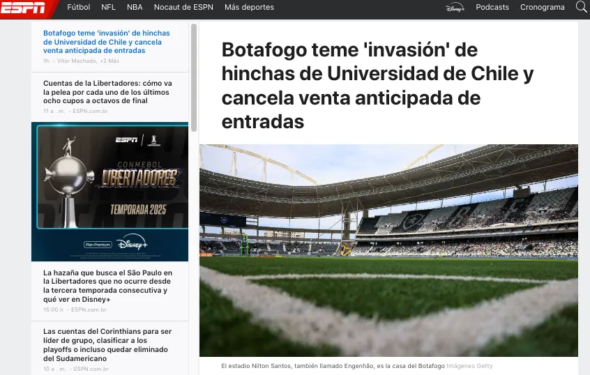 Pese a ello, según indica ESPN Brasil existe alarma por una posible “invasión” de hinchas en el Estadio Olímpico Nilton Santos. Por lo mismo, se decidió suspender toda venta de tickets, en especial en las tiendas físicas para evitar infiltrados.