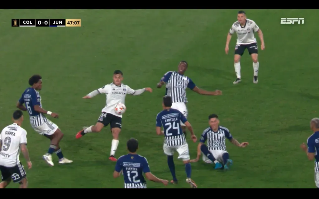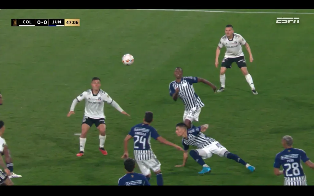 Se jugaba el minuto 47 de juego. Colo Colo había empezado con ímpetu la segunda mitad y un remate de Carlos Palacios había sido sacado apenas con los dedos por el portero cafetero.