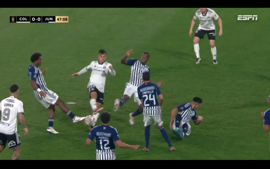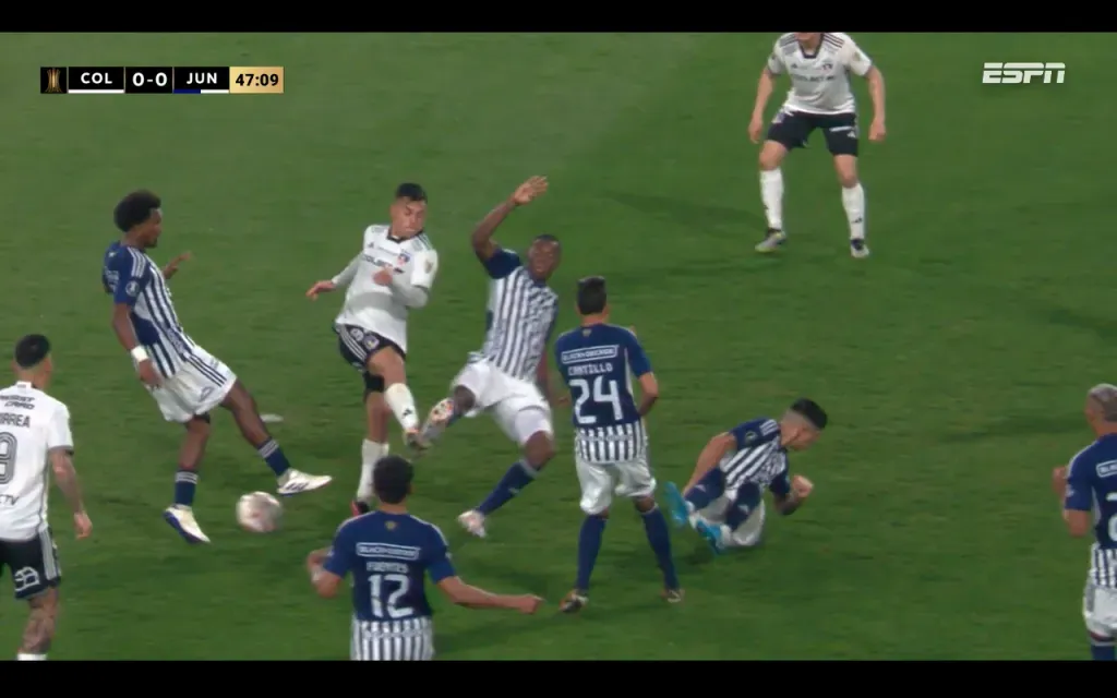 A veces la cobran, otras no. El problema del VAR es que no ha logrado superar el criterio personal de cada árbitro. En el duelo de Colo Colo ante Junior de Barranquilla por Copa Libertadores, nuevamente hubo una jugada polémica, muy revisable.