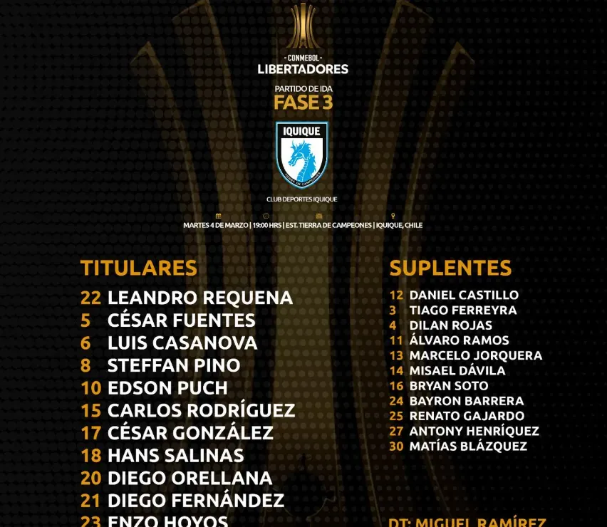 Tras lo ocurrido en el Tierra de Campeones, ahora Deportes Iquique tendrá que ir a Perú a buscar la clasificación ante Alianza Lima. El encuentro está programado para el próximo martes 11 de marzo desde las 19:00 horas.