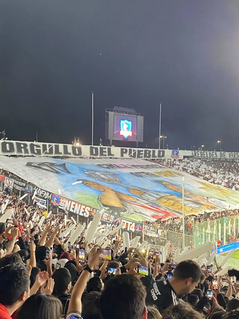 Pero otro punto que fue destacado y aplaudido fueron dos banderas gigantes que se desplegaron. Primero una en el sector Cordillera, que emulaba la camiseta de la Copa Libertadores 1991.