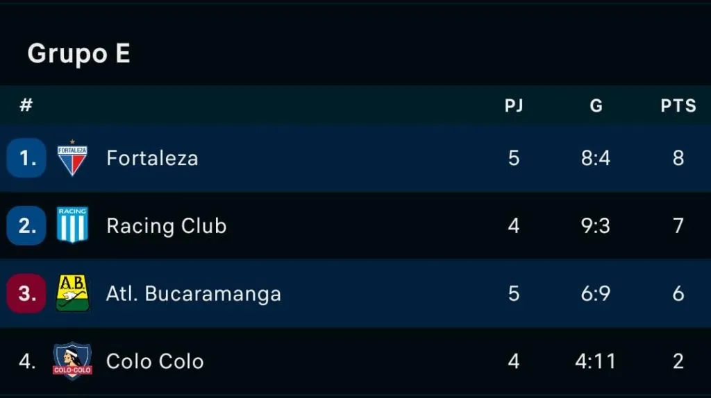 Con este panorama por delante, ahora Fortaleza cerrará su participación en la fase grupal visitando a Racing, en Argentina. Por su parte, Atlético Bucaramanga cerrará ante Colo Colo su aventura, en el Estadio Monumental.