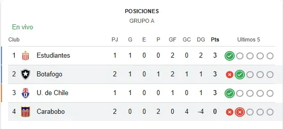 El resultado es una presión para Universidad de Chile en la tabla de posiciones del Grupo A, que deja a Estudiantes de La Plata, Universidad de Chile y al propio campeón vigente igualados en tres puntos.