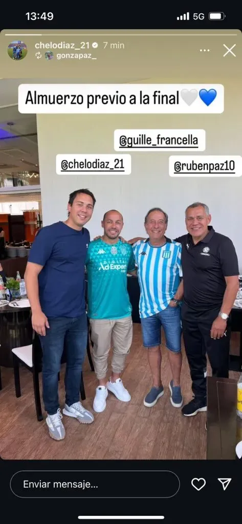 Y porque es hincha de Racing de Avellaneda, Marcelo Díaz quiso estar presente en la gran final. Es por eso que viajó a Paraguay para hacerse partícipe del momento histórico de su ex club.