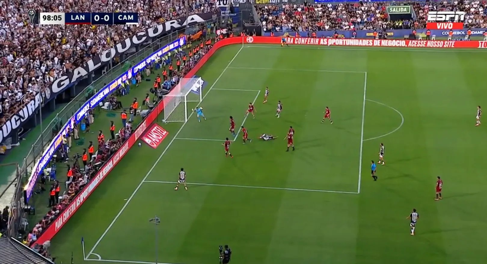 No obstante, también se siguió en la misma dinámica. Tiros desde distancia de los brasileños y pelotas paseándose por el área del Galo, pero sin remates de peligro por parte de Lanús.