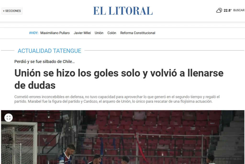Otro medio, UNO de Santa Fe, tituló que “Unión no estuvo a la altura de su gente en Chile y sufrió una penosa derrota”.