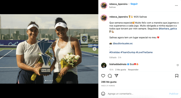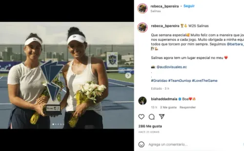 La tenista chilena Bárbara Gatica tuvo una semana dorada y sumó dos trofeos a su palmarés personal. Este domingo, la nacional se quedó con el cuadro de singles del torneo W25 de Salinas, en Ecuador, apenas un día después de quedarse con los dobles, junto a su parejaRebeca Pereira, quien es brasileña.
