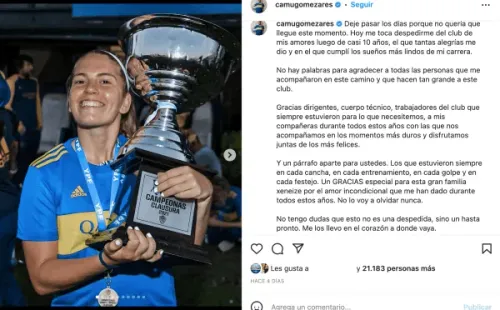 Camila Gómez Ares es una de las figuras de Boca Juniors Femenino desde hace varios años. A pesar de ser volante central, es de lasgoleadoras del equipo y se convirtió en pieza fundamental de todos los títulos que ganaron entre 2020 y 2022. Y aunque volvió a la Selección Argentina, la jugadora dejó el elenco xeneize de cara a 2023.
