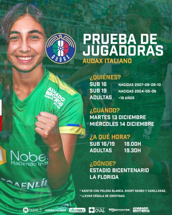 Fernández Vial suspendió sus pruebas para esta semana y debe confirmar nueva fecha y horario. Audax Italiano comenzó este martes con futbolistas jóvenes, mientras que las adultas que quieren probarse deben llegar este miércoles 14 al estadio Bicentenario de La Florida desde las 19:30 horas.