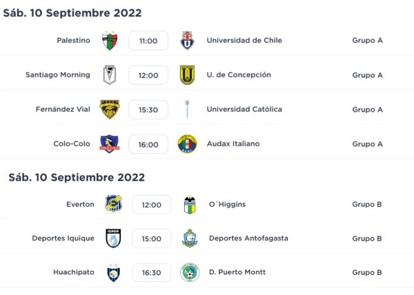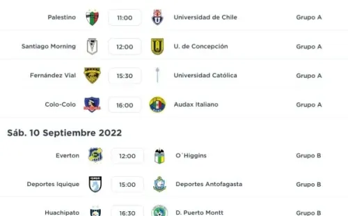 En el grupo B, en tanto, Deportes La Serena tendrá libre y Deportes Antofagasta, quien no ha jugado en esta segunda rueda,hará de visitante contra Deportes Iquique. Colo Colo será local contra Audax Italiano, Santiago Morning recibirá a Universidad de Concepción y Universidad Católica visitará a Fernández Vial.