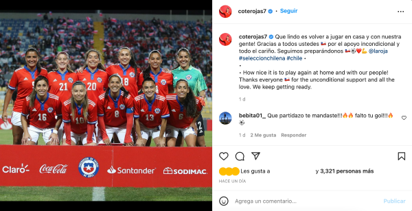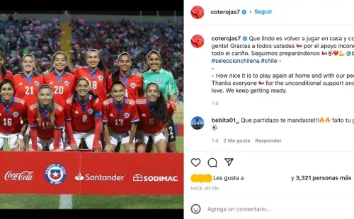 Respecto a su análisis del primer juego ante las ecuatorianas, Cote señaló que”ha sido una fecha FIFA muy buena porque nos adaptamos al esquema que quiere el profe. Pero siempre hay algo que mejorar”, agregó la ’13’ de la selección chilena.