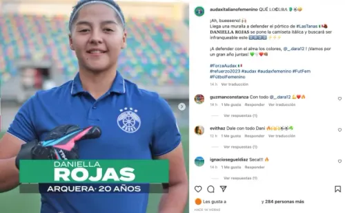 Su destino estaba en Audax, club que la oficializó en las últimas horas y que la formó hace largos años. “QUÉ LOCURA. Llega una muralla a defender el pórtico de#LasTanas. Daniella Rojas se pone la camiseta itálica y buscará ser infranqueable este 2023. ¡A defender con el alma los colores! ¡Vamos por un gran año juntas!”, destacaron.