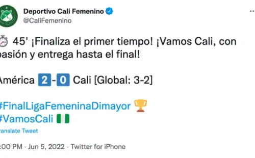 La Liga Femenina Betplay 2022 en Colombia terminó este fin de semana. América de Cali y Deportivo Cali se enfrentaron desde las 18:05 horas en el estadio Pascual Guerrero para definir a la campeona del certamen. El equipo deGisela Pino no pudo mantener la victoria de la ida y cayó por 4-3 global, lo que le dio el título a las diablas.